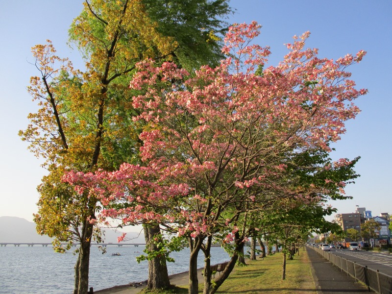 ハナミズキの湖岸