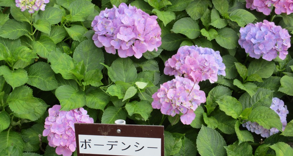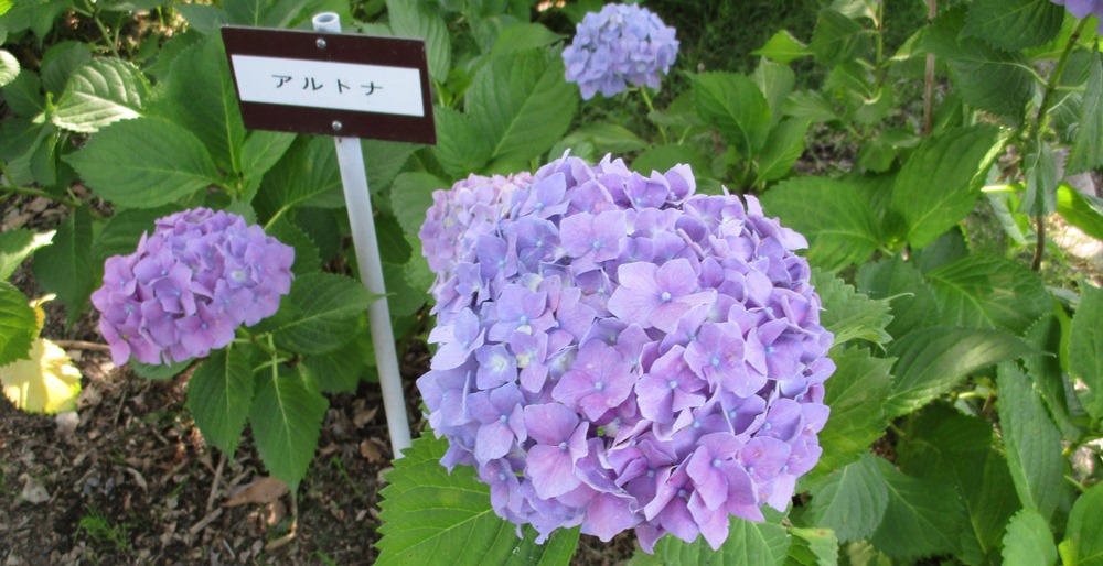 | 紫陽花:守山市芦刈園 園内の表示板から名前を紹介 |