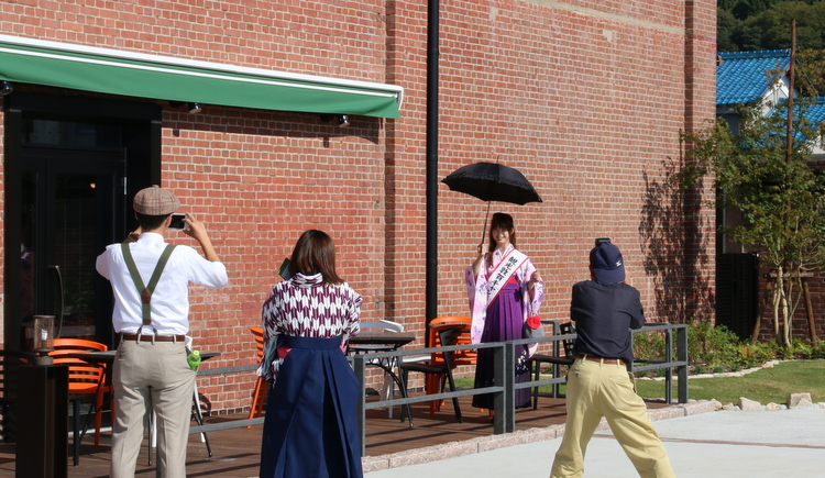 赤レンガ館前で観光キャンペーン