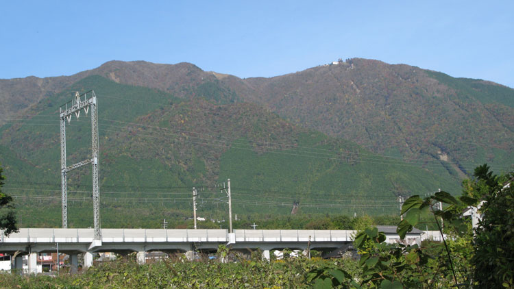 | 比良山とケーブル終点駅跡(左手中腹) |