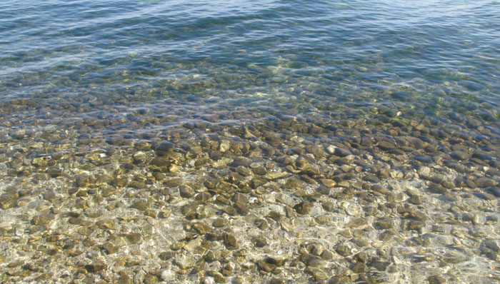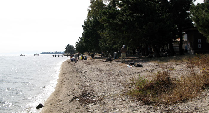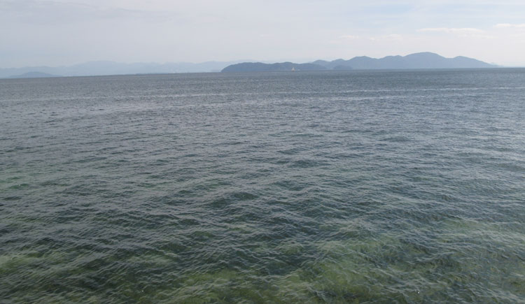 | 北小松水泳場(昼食) 向こう岸の沖島 |