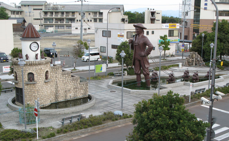 | ガリバー像と近江高島の町 |