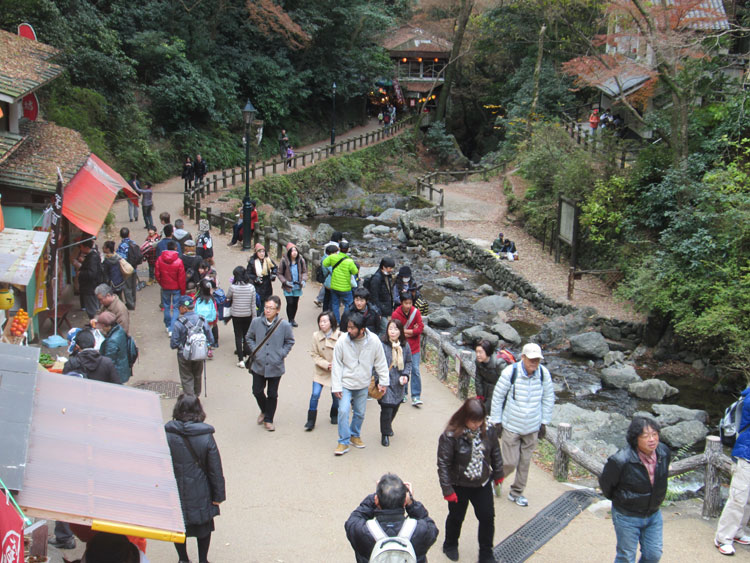 箕面大滝前の観光客