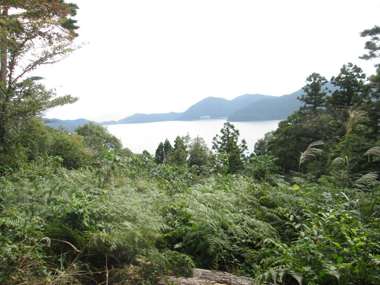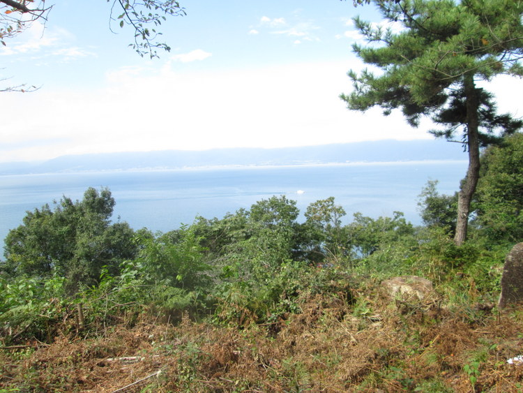 山への上り口から港一望