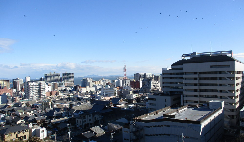 善光寺前からの市内ー右は大津赤十字病院